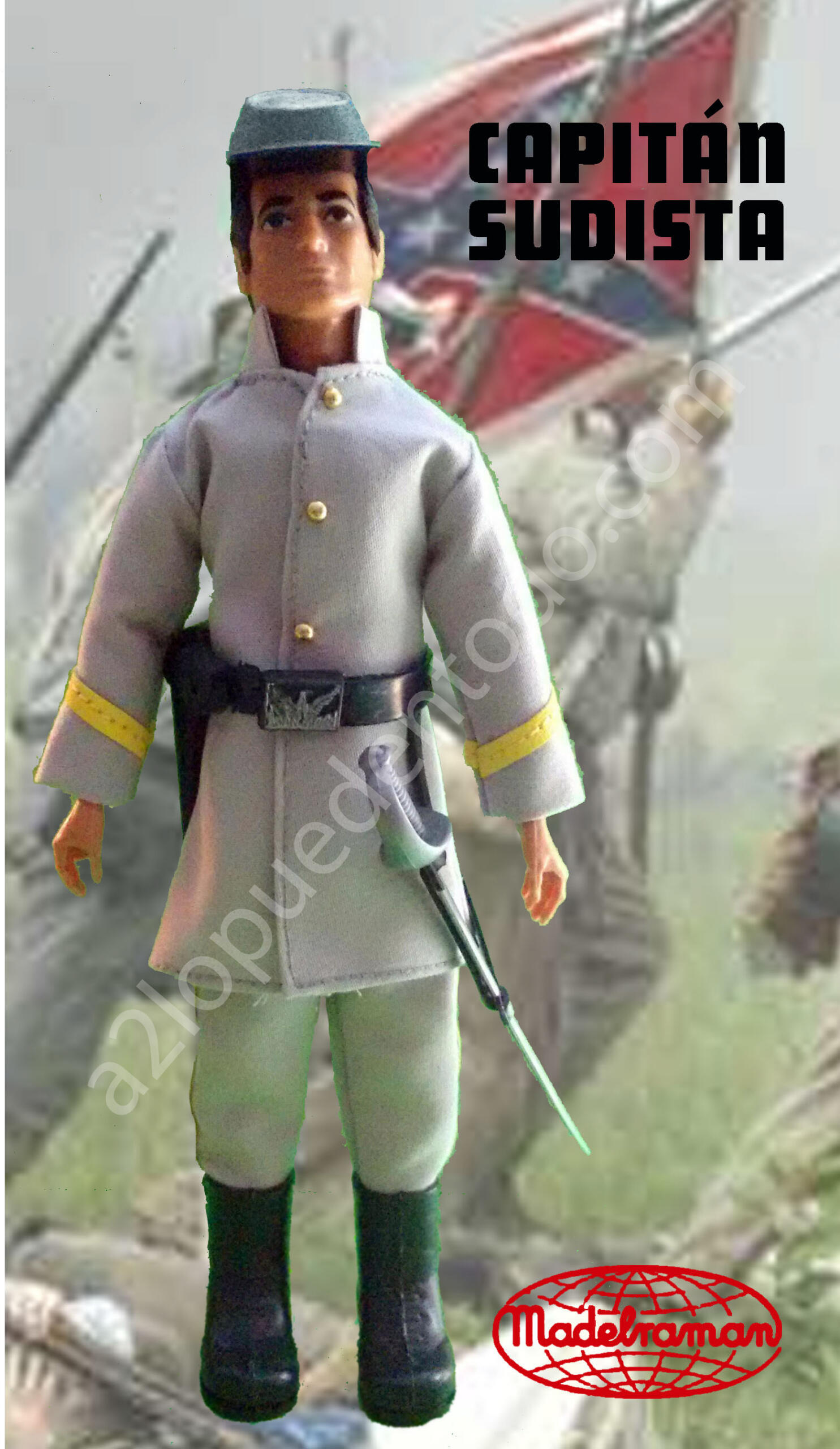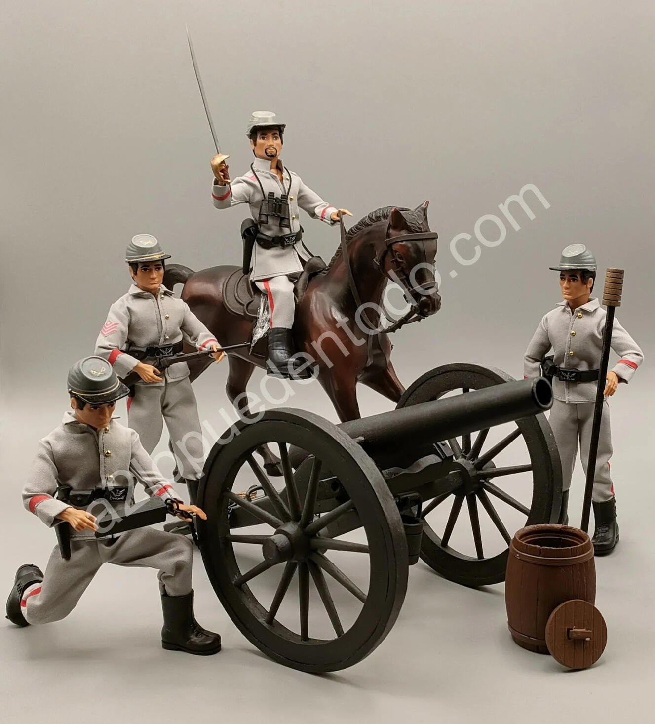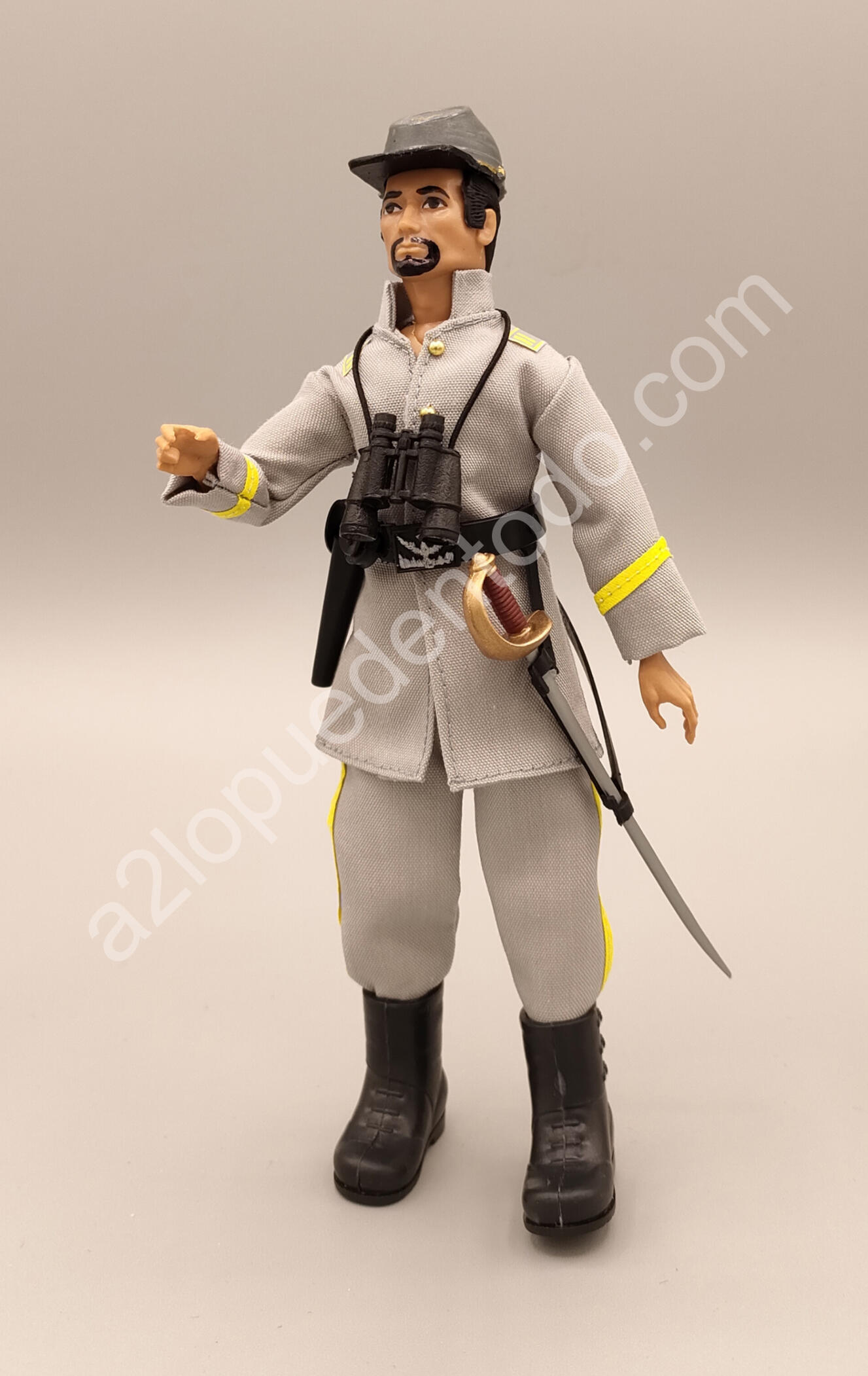 Presentamos cuatro soldados sudistas con ropa cosida a medida, maniquíes, cinturones, sable, botas y prismáticos reinyectados.