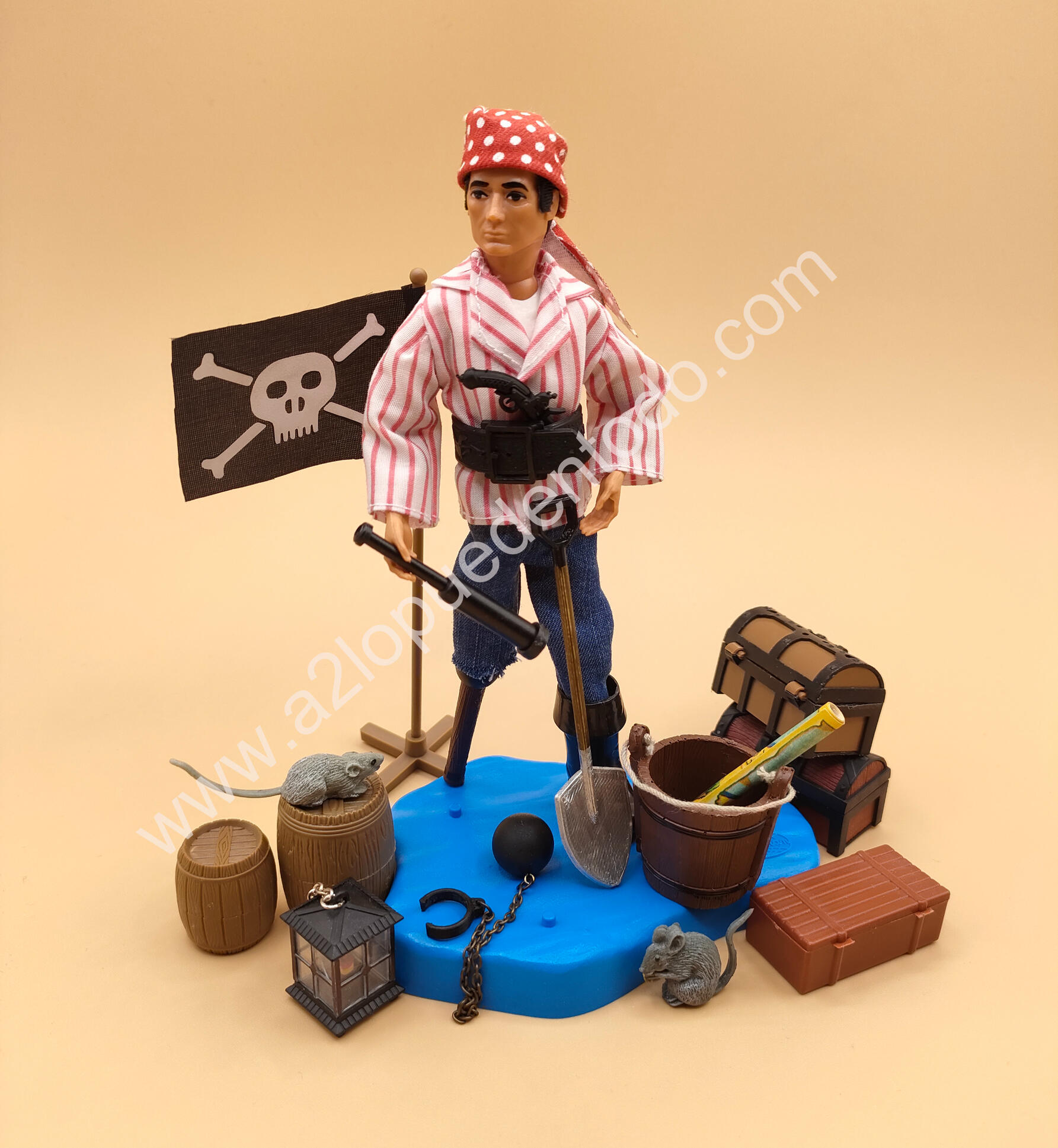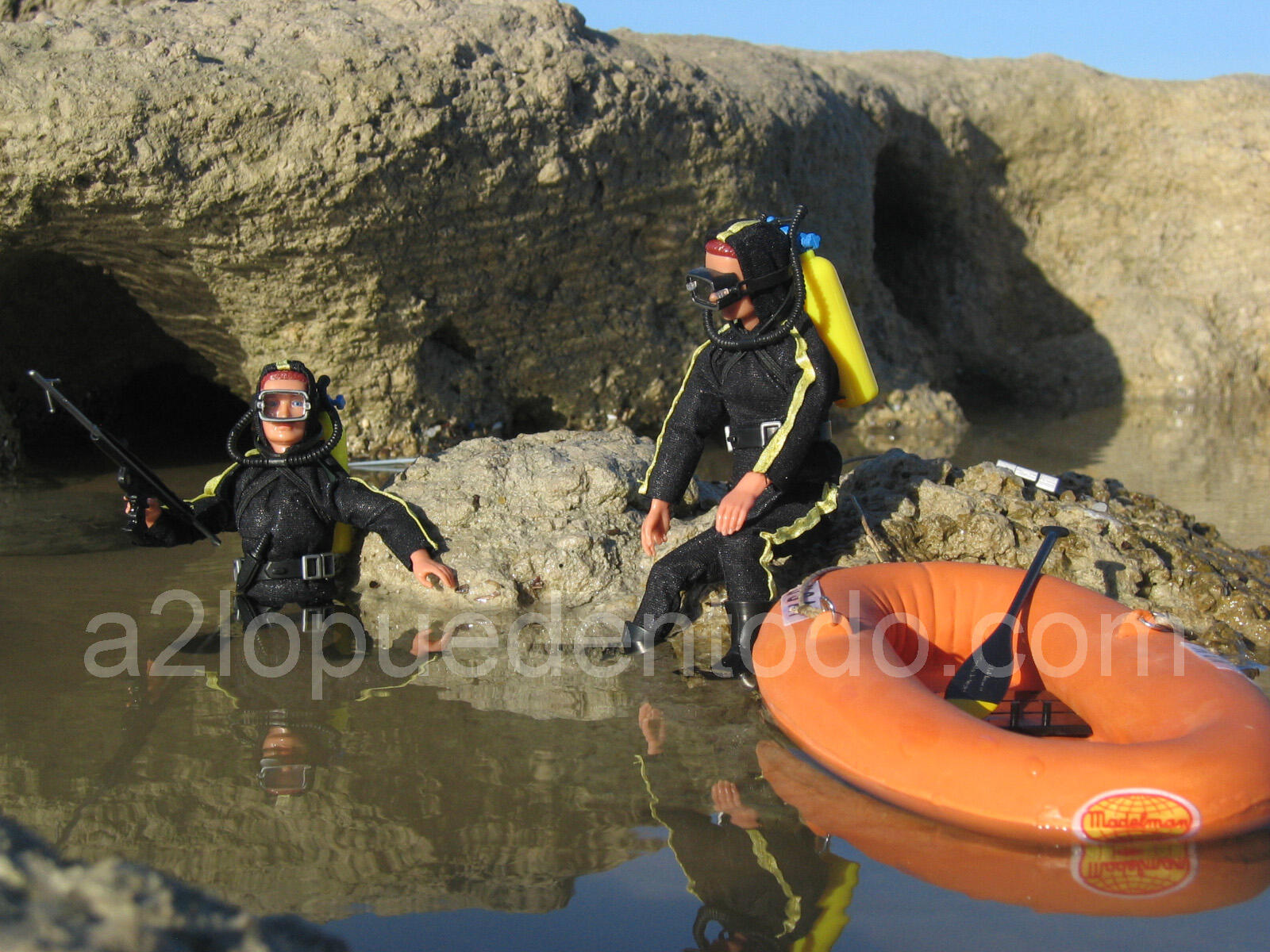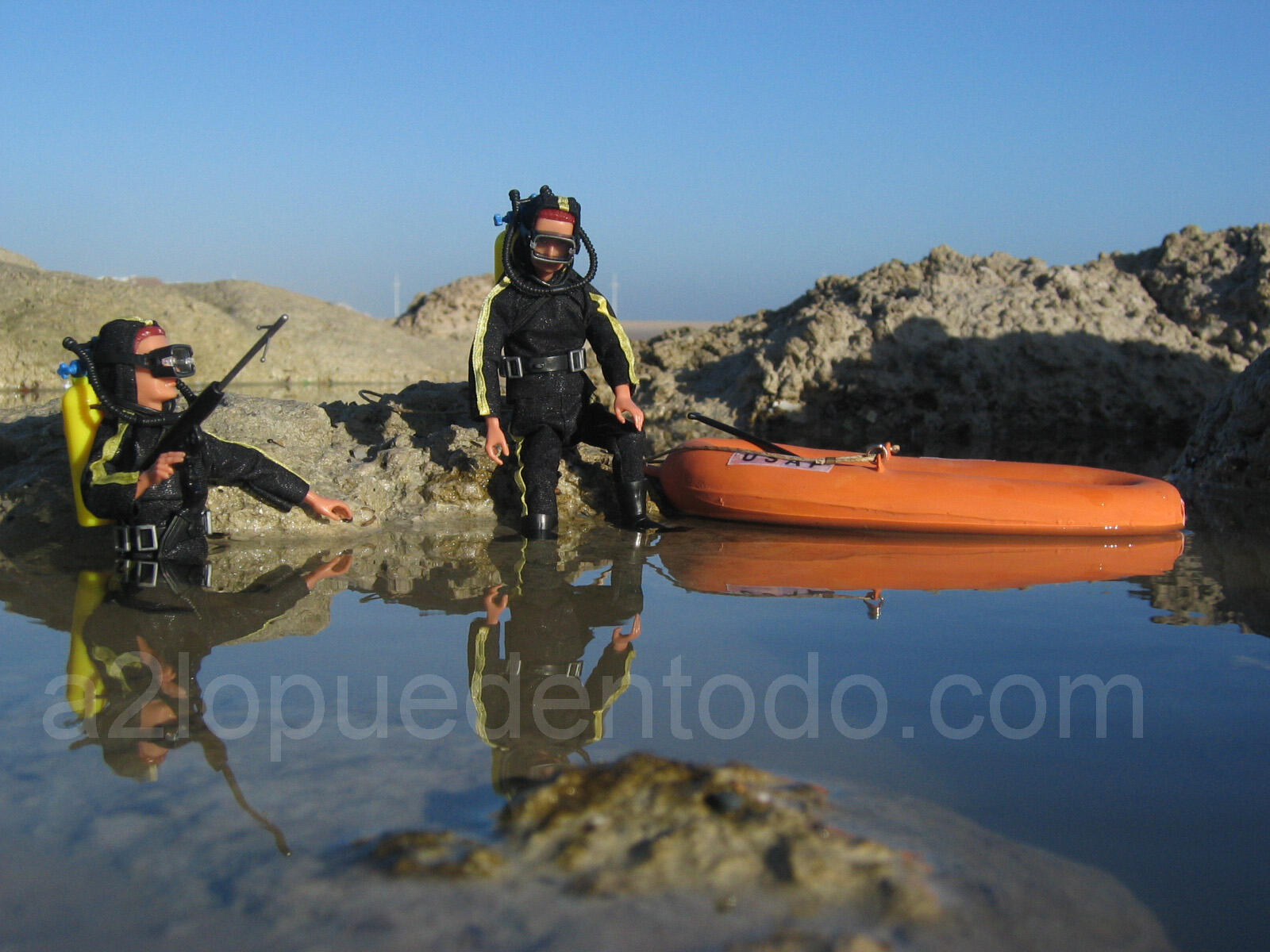 Traje cosido a medida sobre maniquí Altaya con cabeza reinyectada. Complementos altaya. Boya, pesas y bomba diseñadas y realizadas con impresora 3D.