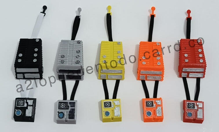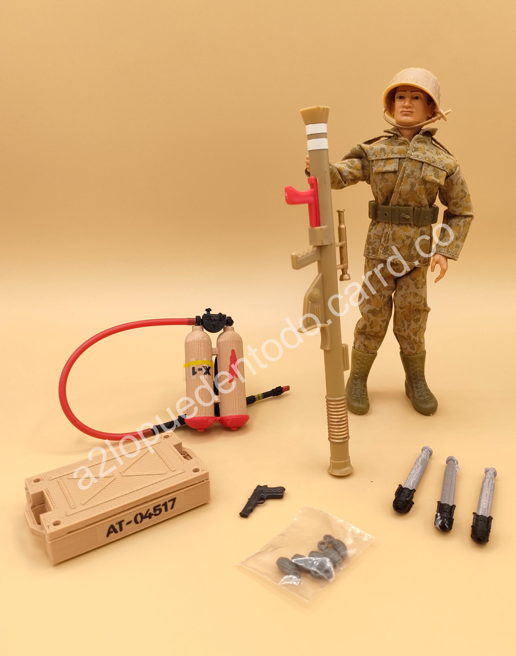 - Lanzallamas, caja de municiones, y proyectiles impresos en 3D.