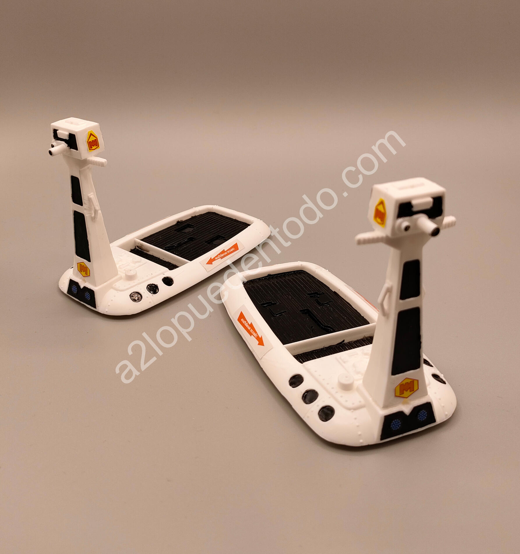 Estas dos reproducciones de la EVA POD de 2001 se realizaron a partir de las piezas que me prestó un gran coleccionista, Lluis, y que me permitió reproducir la EVA prototipo de Madelman que Santiago Sánchez pudo clonar en resina.